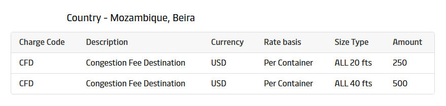 12月25日起,对从中东和远东港口至莫桑比克贝拉港的货物征收拥堵费目的地 (CFD)。